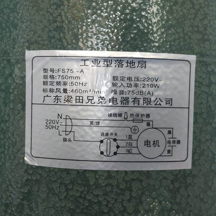 梁田纯铜牛角扇机头750厘650厘500里210W墨绿色落地扇壁扇大功率