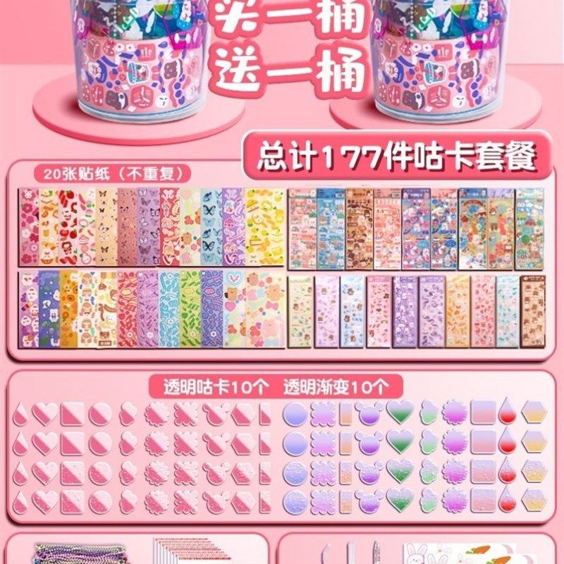 咕卡贴纸200张不重复超级便宜贴画女孩儿童手帐随心配镭射套装 古卡手杖骨卡咕咔盘和咕盘全套材料估卡贴贴纸
