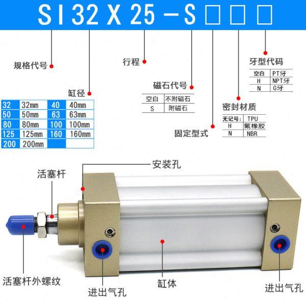 125 100 SC标准气缸大全32小型气动40大推力150伸缩50