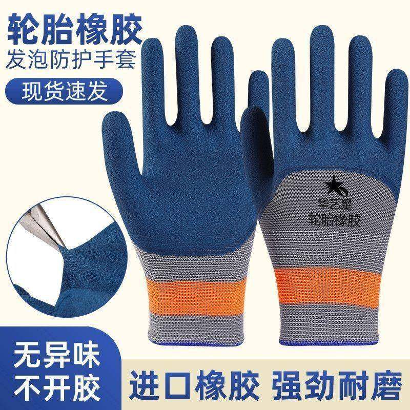劳保手ROW套轮工橡胶发泡耐磨胶滑皮地干活手套防透气胎浸胶乳胶