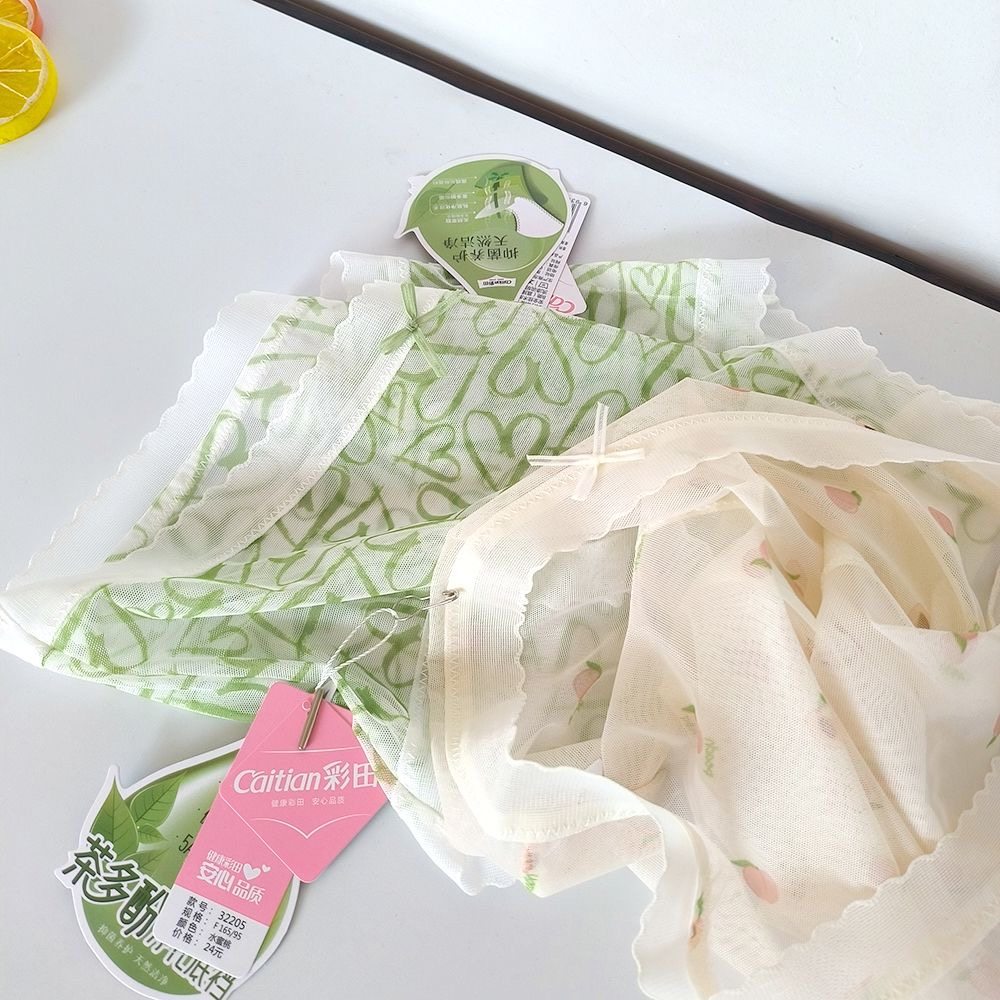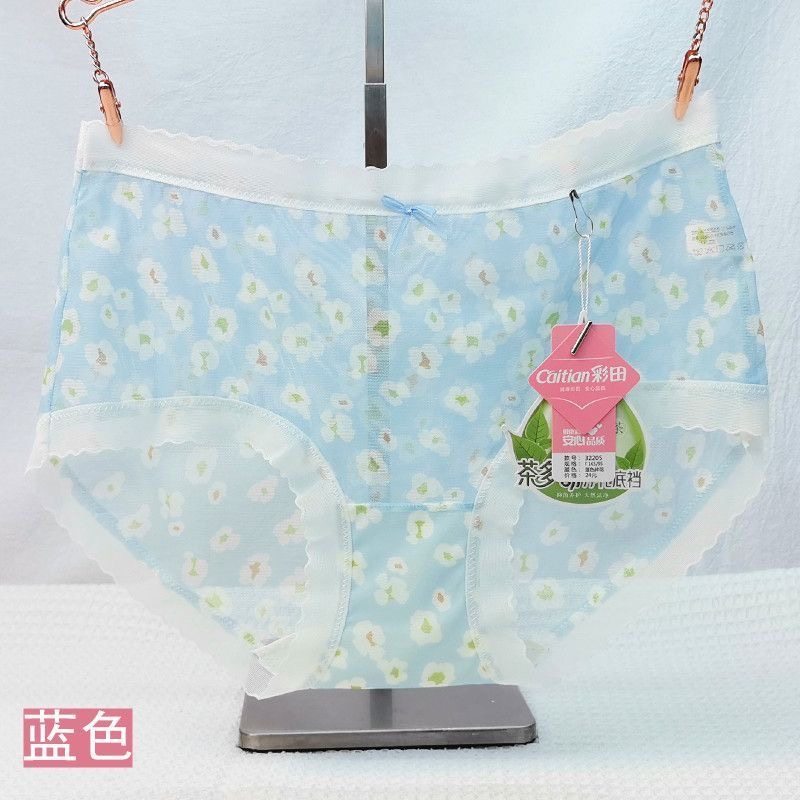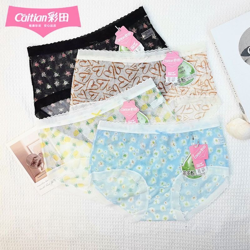 3条装 32205中腰蕾丝性感轻薄柔软透气速干茶多酚抑菌裆 彩田内裤