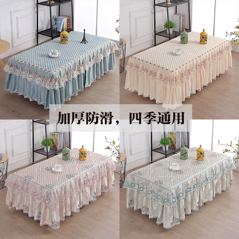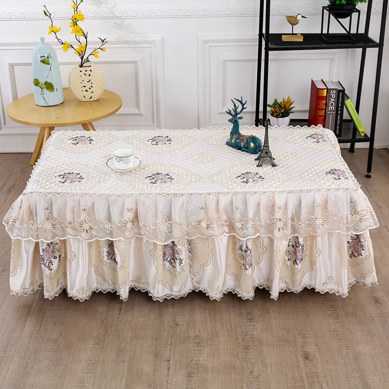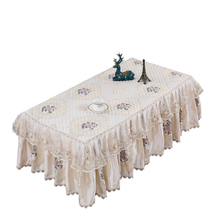美式 浪漫盖巾 桌布防尘蕾丝桌旗纱方形餐桌电视柜茶几台布轻奢法式
