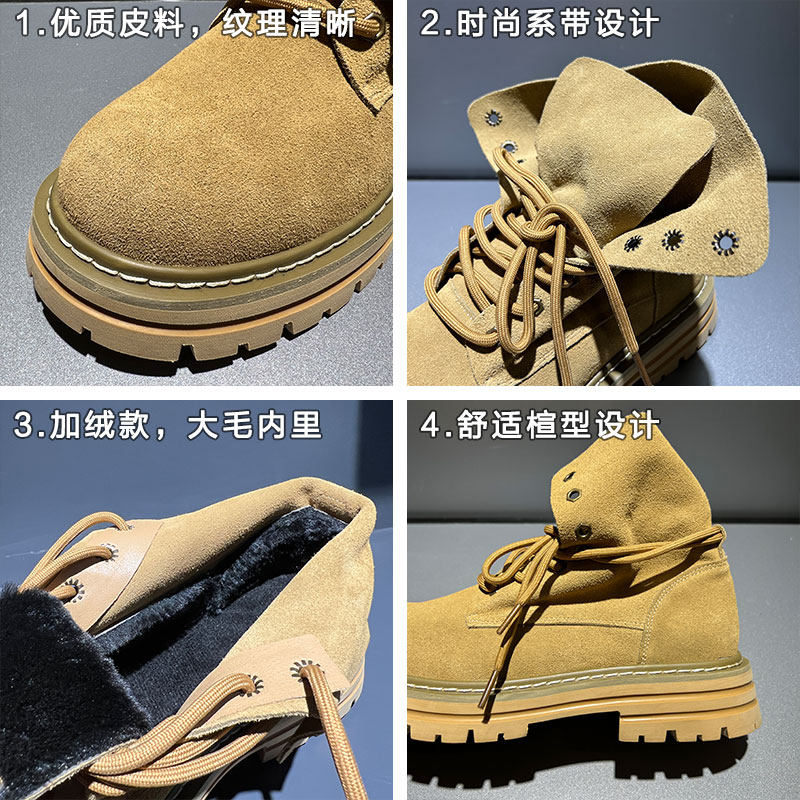 秋冬 增高厚底中帮户外登山加绒加厚保暖男士 骆驼男鞋 马丁靴男工装