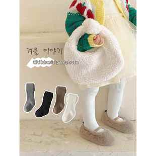 外穿加绒加厚儿童连裤 女童打底裤 薄款 白色宝宝春秋季 袜 薄绒秋冬款