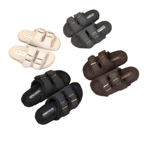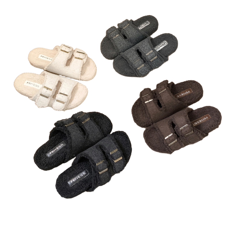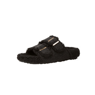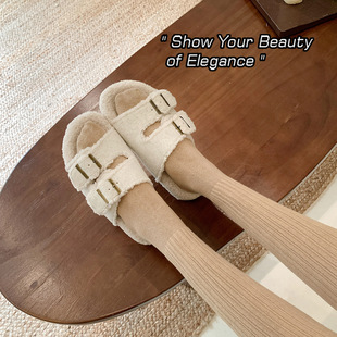 丑萌一脚蹬勃肯鞋 女秋冬外穿韩版 双扣外穿百搭厚底毛毛拖鞋 懒人鞋