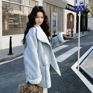 300斤特大码 韩系简约百搭棉服外套女胖mm蓝色加厚保暖面包服上衣