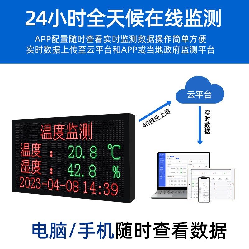 农业大棚温湿度显示屏LED看板养殖环境监测4G土壤co2光照传感器
