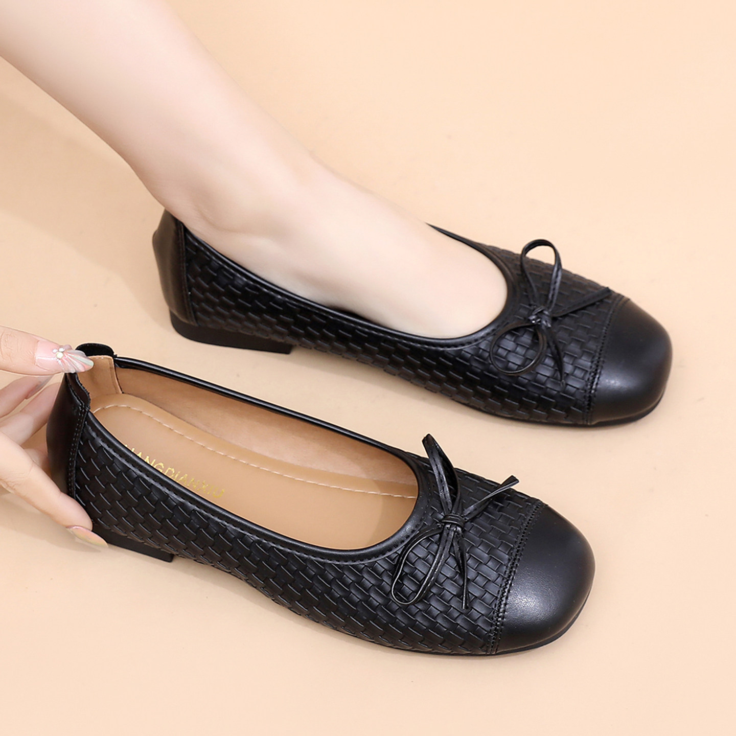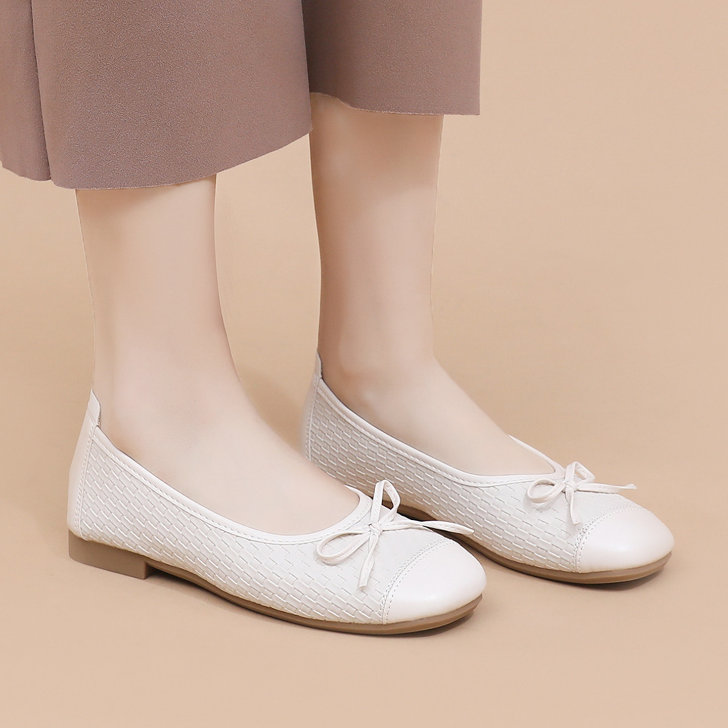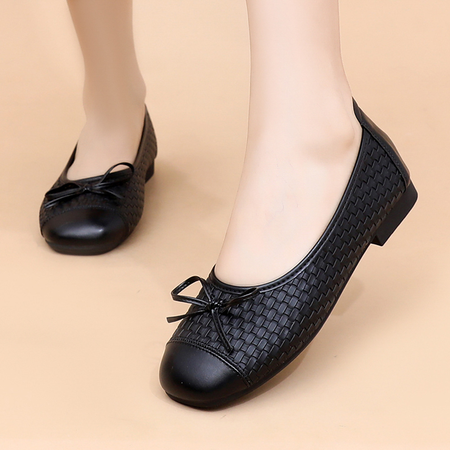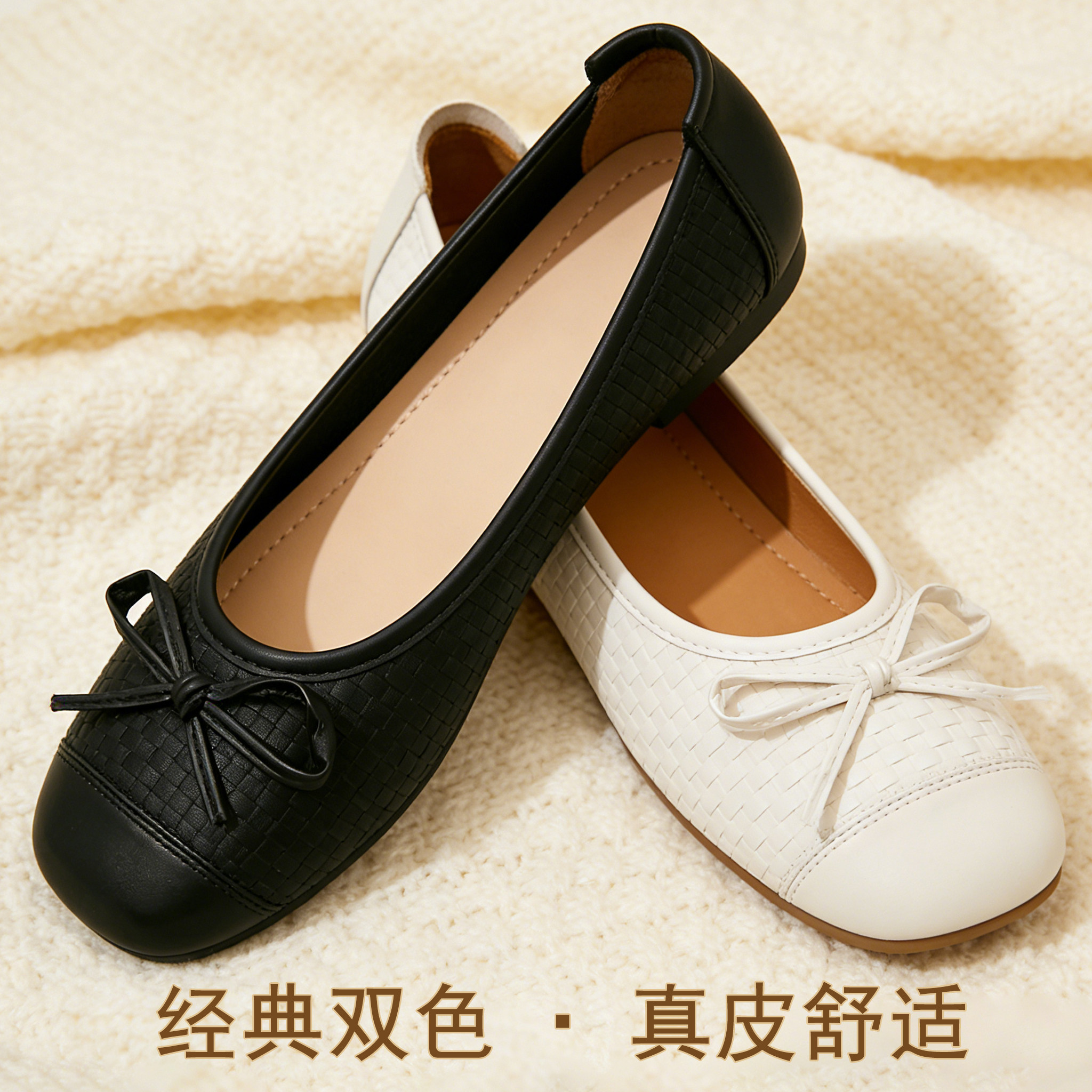 浅口女平底蝴蝶结软底舒适通勤上班单鞋 真皮软底芭蕾鞋 新款 春季
