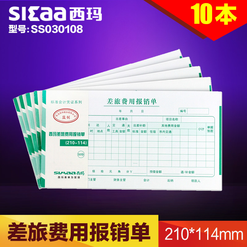 114mm 210 西玛用友差旅费用报销单SS030108 10本装