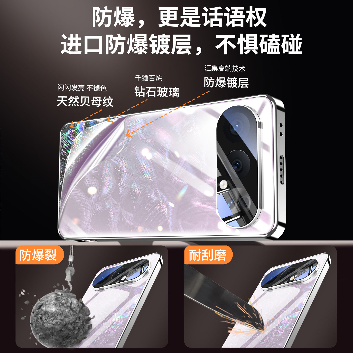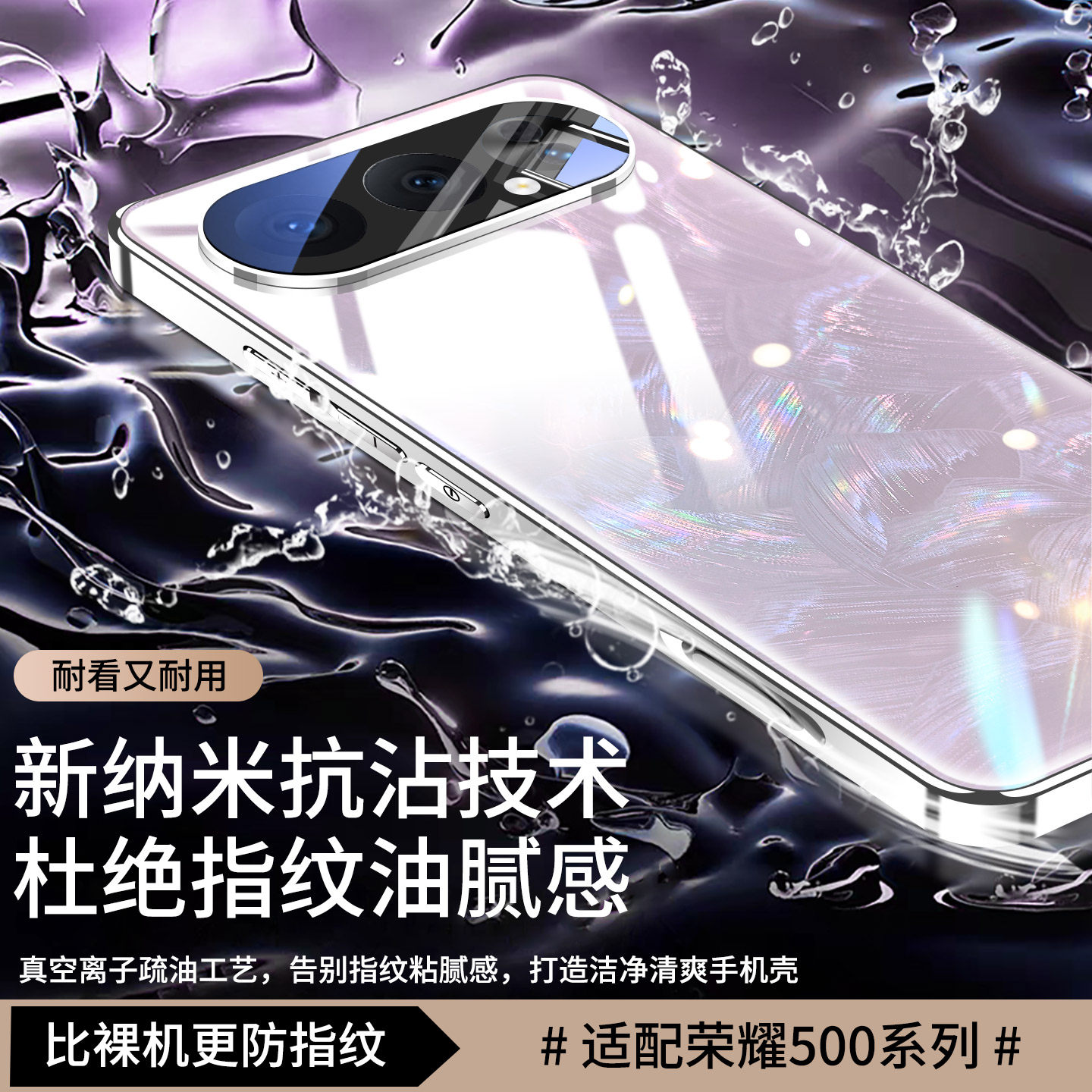 适用荣耀500pro手机壳华为500新款 镜头全包防摔honor璀璨玻璃外壳系列高端后壳专用女生自带镜头膜保护套 女款