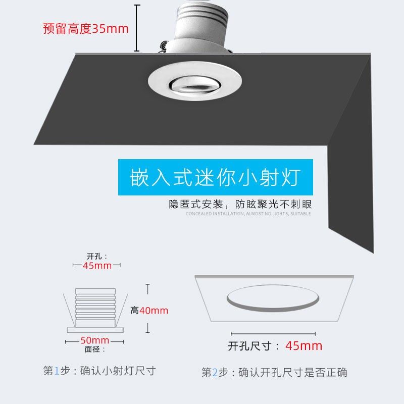 筒灯嵌入式 75mm家用led射灯天花灯三色客厅吊顶桶灯孔灯洞灯铜灯