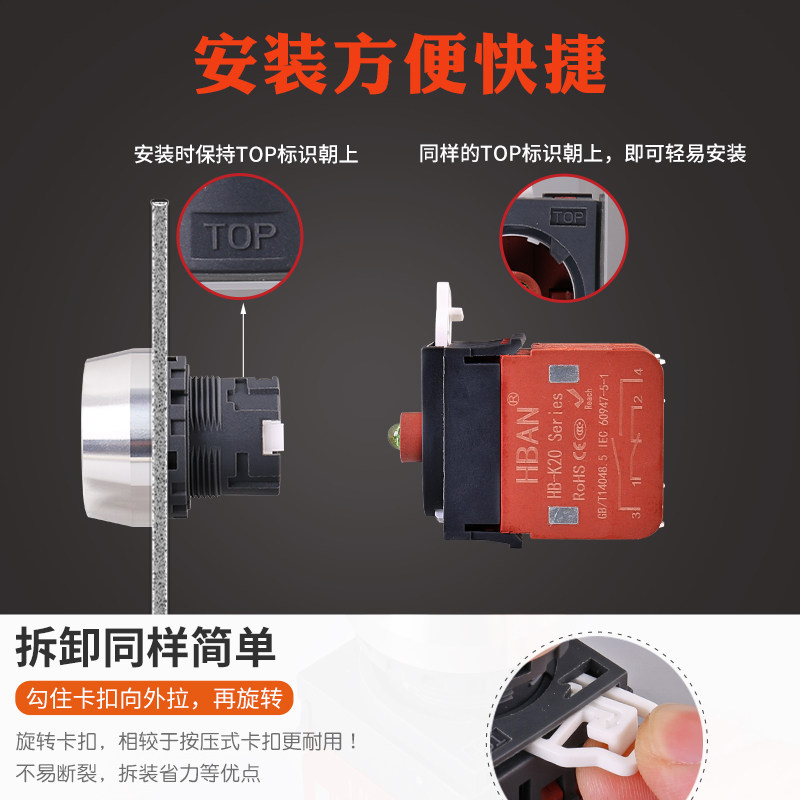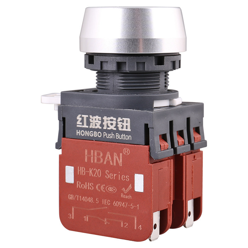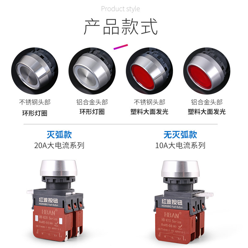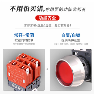 红波20a大电流防水按钮开关自复位带灯自锁22mm机械设备电源低压