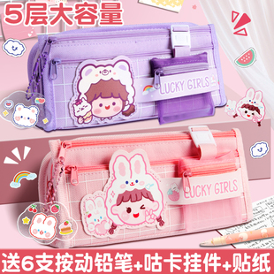 9层大容量笔袋女生2025新款 超大容量高颜值文具盒铅笔盒小学生卡皮巴拉铅笔袋可爱儿童文具收纳袋多层翻盖女