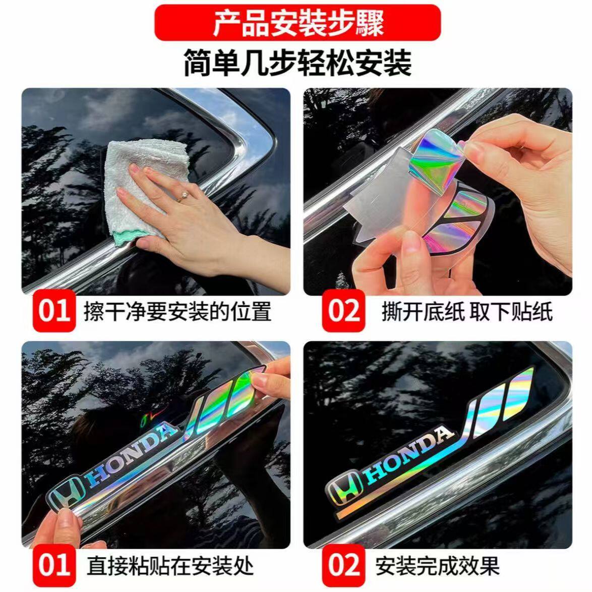 新镭射反光贴纸汽车三角窗七彩渐变运动拉花车身装 饰划痕遮挡车贴
