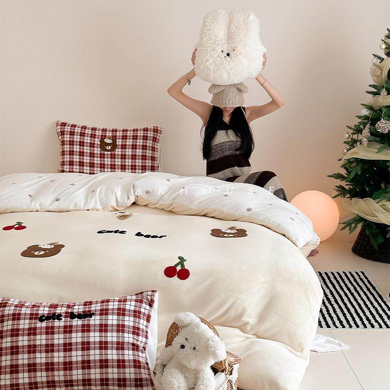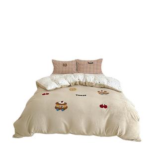 Lovely 保暖绒毛巾绣秋冬床上用品 可爱卡通牛奶绒四件套2024新款