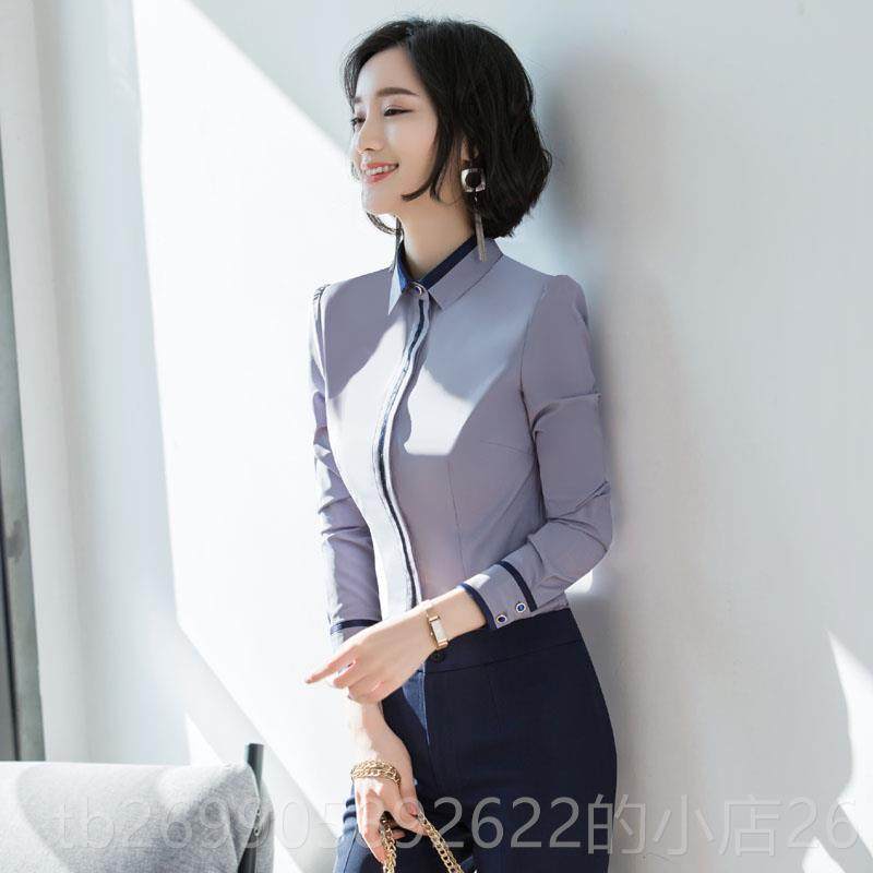 203春秋新款 工装 衬衣韩版 正品 白色修身 女长袖 2正装 显瘦职 业衬作衫