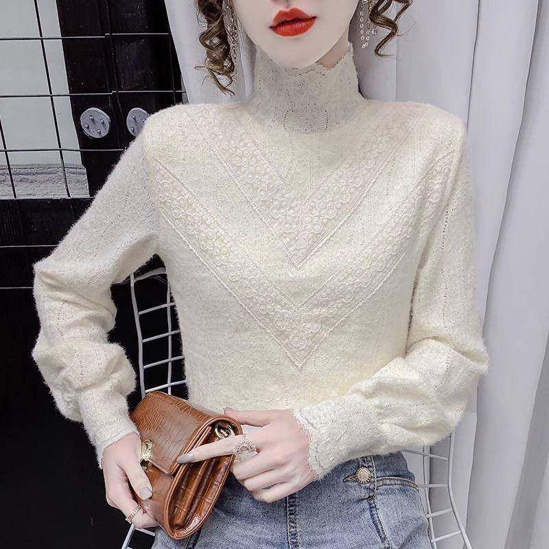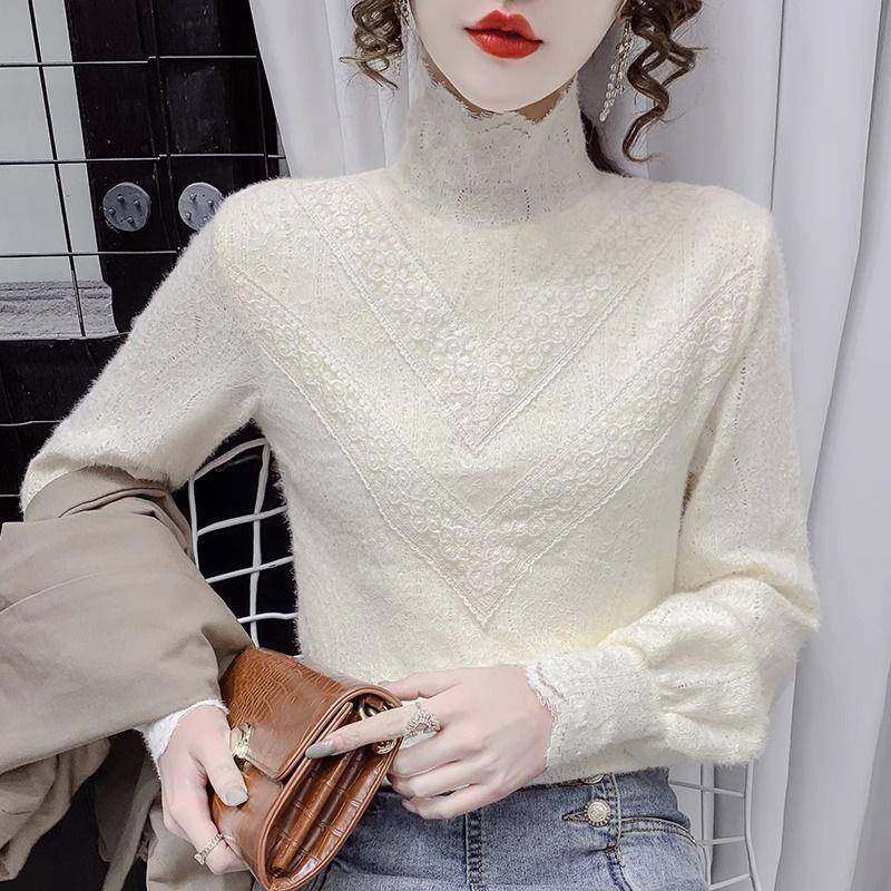 洋气内搭上衣长袖 时尚 小1219e 女2025秋冬新款 高领加绒蕾丝打底衫