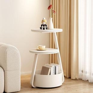 客奶油风沙发边几现简约桌厅N11岩板小圆桌小户型角几床头子代小