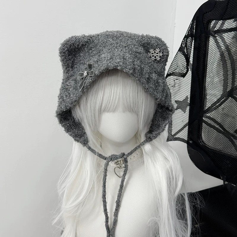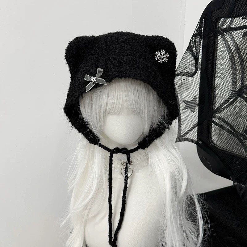 Zien 显脸小百搭大头围包头帽子 可爱小狗刺绣针织毛线帽女秋冬季