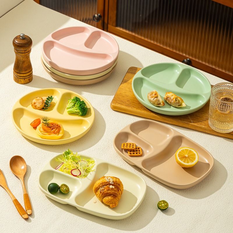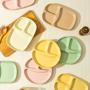 陶瓷211减脂分格餐盘圆形三格盘子早餐大人儿童分餐盘减肥水果盘