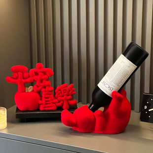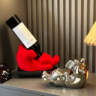 躺赢兔红酒架摆件轻奢高档家居客厅餐边柜玻璃柜酒柜装 饰品高级感