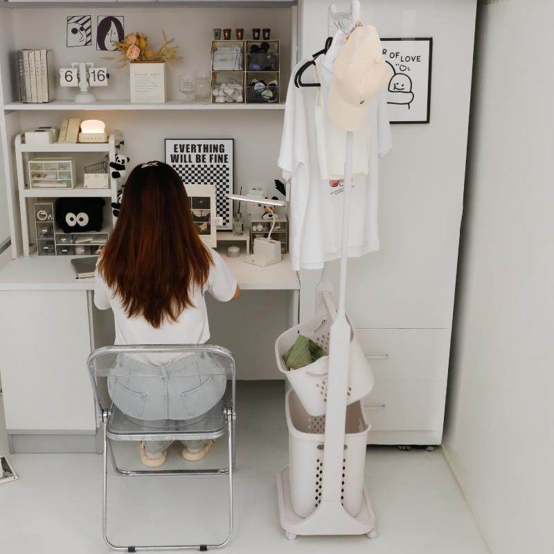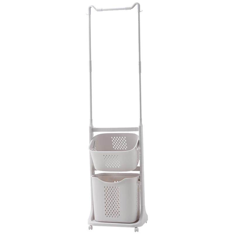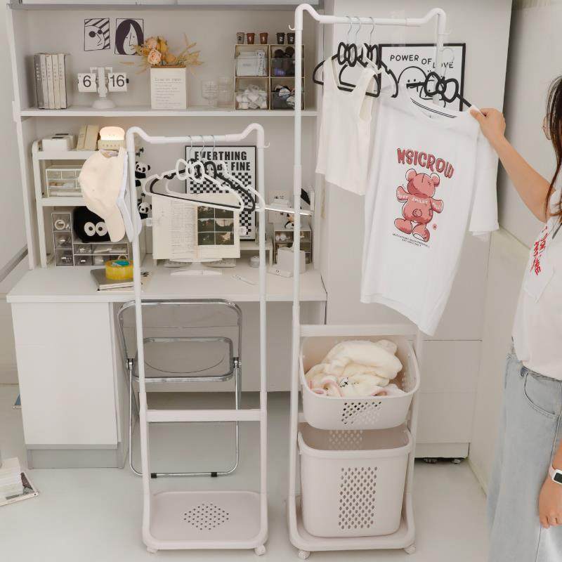 7T小型衣帽架宿舍学生用隔夜衣架可移动脏衣篮收纳筐简易落地挂衣