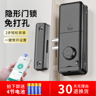 免打孔门锁 涂鸦遥控电子刷卡免开孔房门木门暗门 隐形门无损安装
