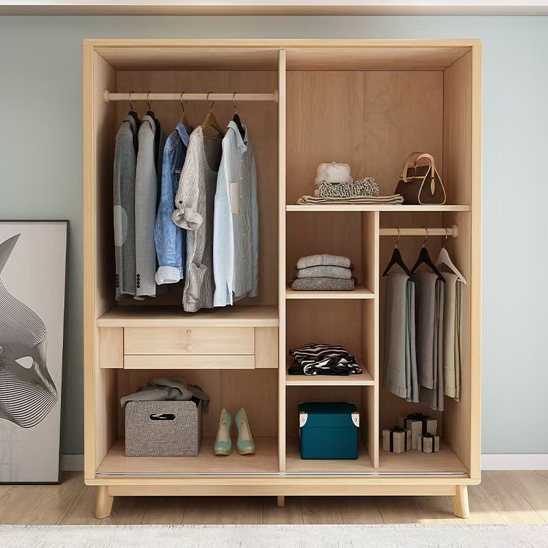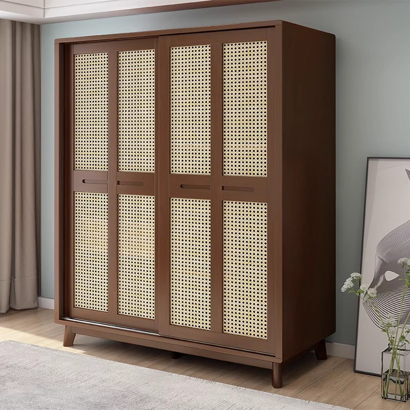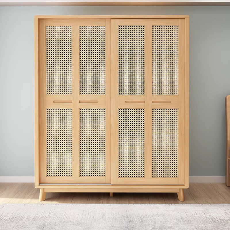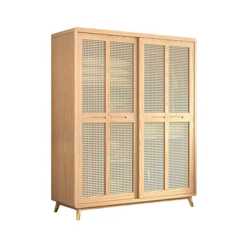 衣柜家用卧室推拉门实木衣橱原木小户型移门收纳柜实木柜门藤编柜