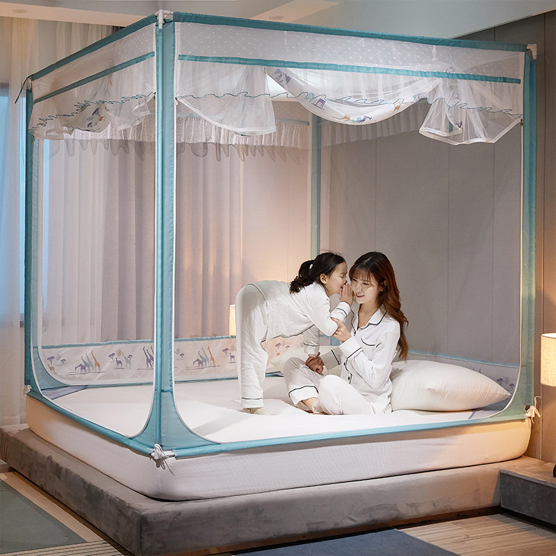 儿童防摔尘可折叠纹帐双门 卧室免安装 夏季 蒙古包蚊帐家用2025新款