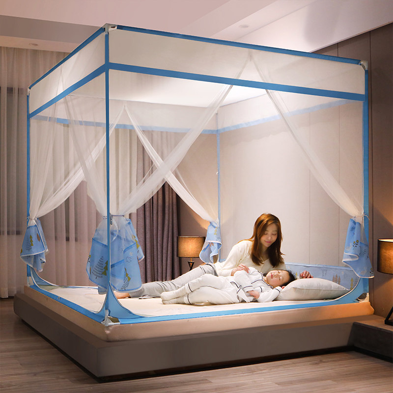 新款 蚊帐1.8米1.0m支架1.2m1.5米家用纹帐三开门卧室落地加粗防蚊