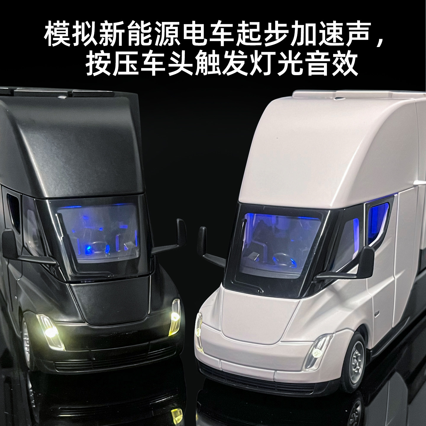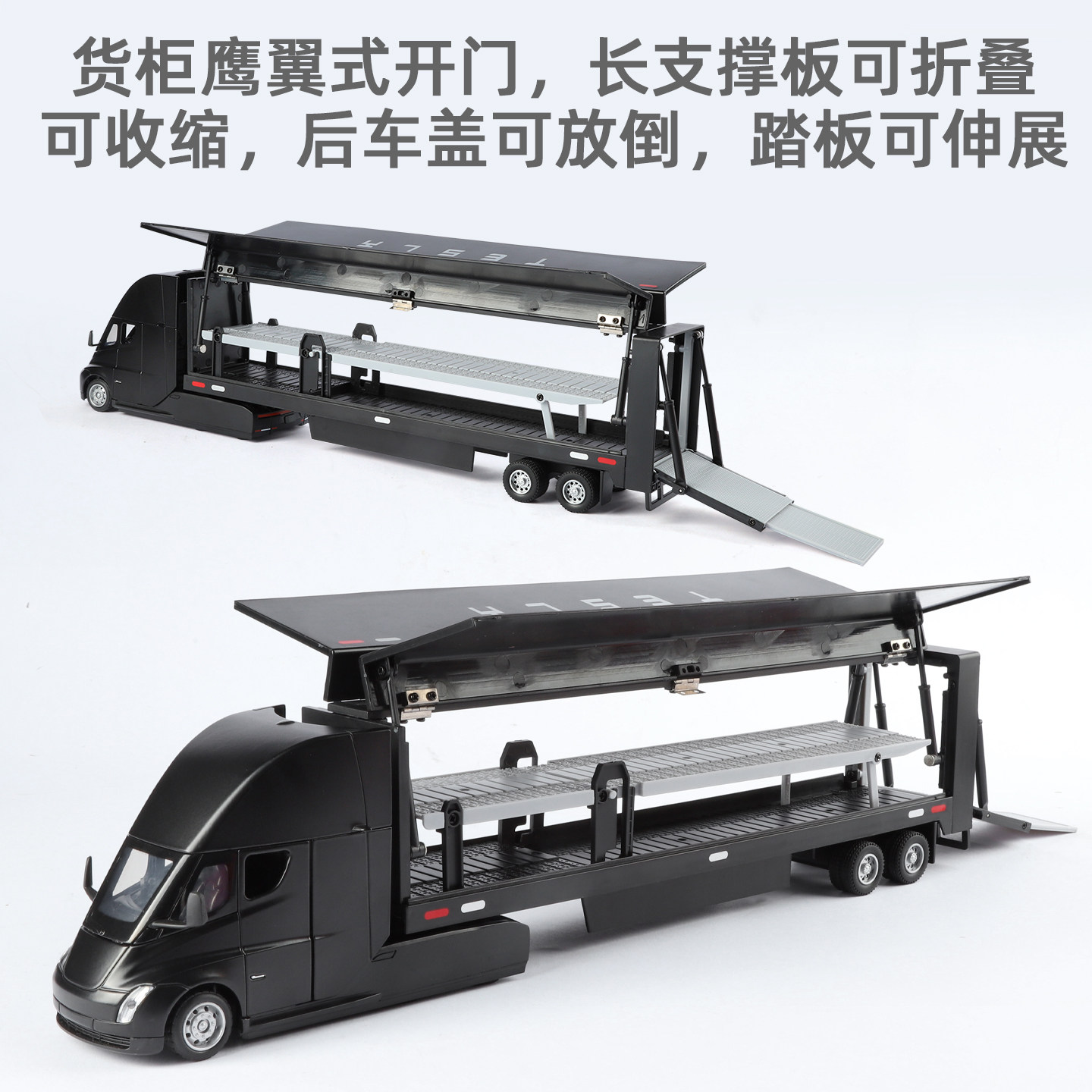开门声光回力 特斯拉Semi货柜双层运输车合金模型玩具车 XHD1