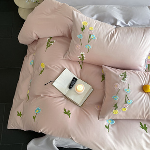 秋冬加厚100S长绒棉磨毛全棉毛巾绣被套四件套保暖高密度纯棉床品