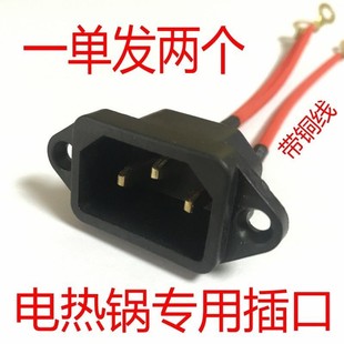 电炒菜炒锅配件插座电热锅插口带线铜脚插头通用电锅电源线插三孔
