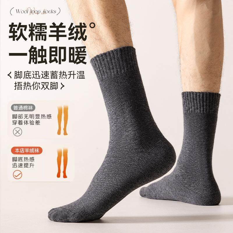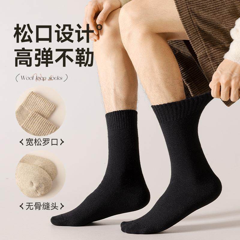 超厚羊毛袜子男秋冬款 长袜 加厚加绒长筒羊绒保暖抗寒棉袜高筒冬季