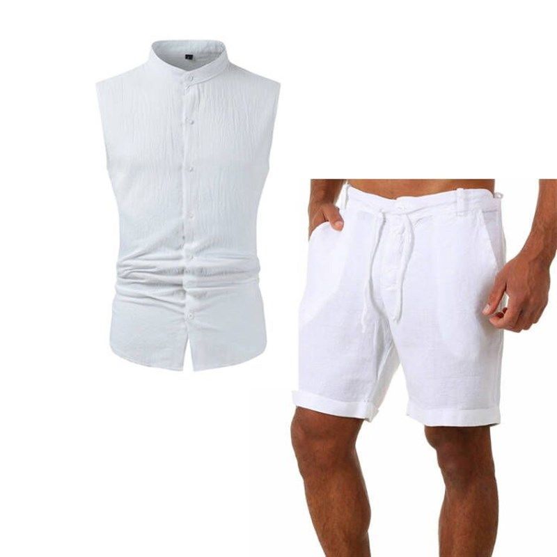 Collar Leisure Linen 2025 Oversize Standing Cotton Casu Mens