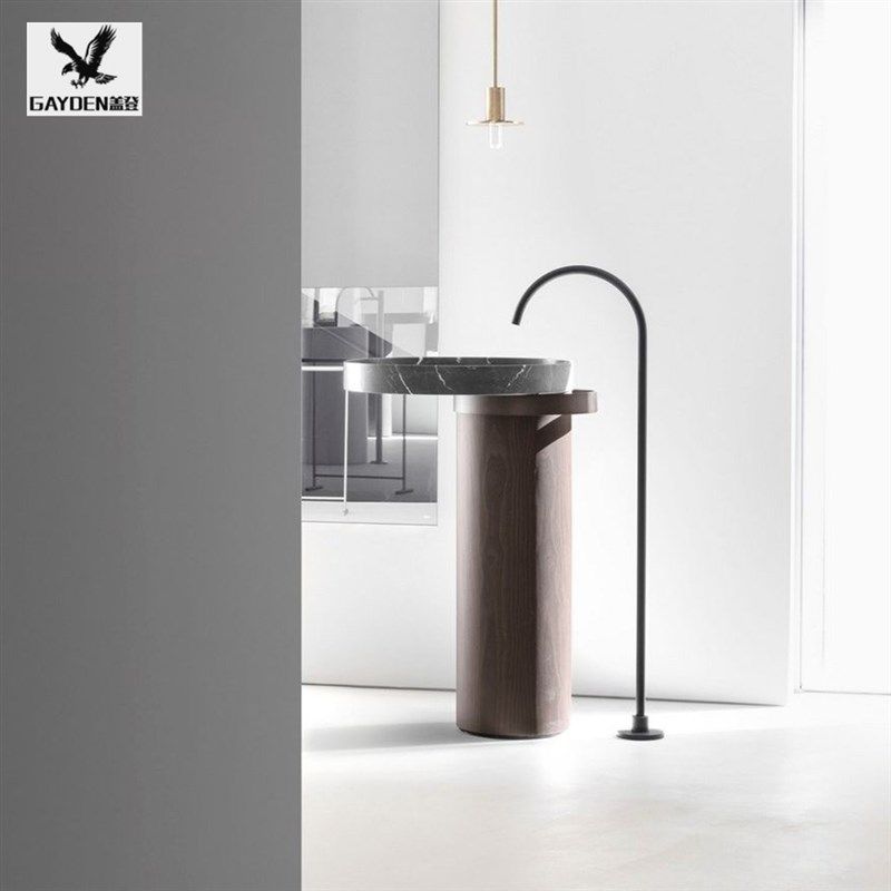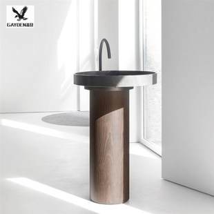 户外立柱洗手盆一体落地式 庭院大理石洗手台室外阳台石头洗脸台盆