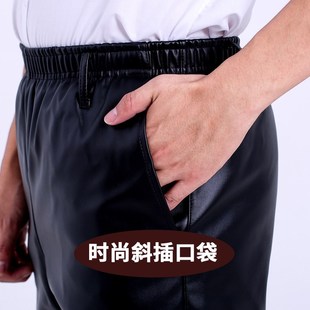 外卖骑手宽松直筒长裤 秋冬季 松紧腰男士 男防风防水中老年皮裤 皮裤