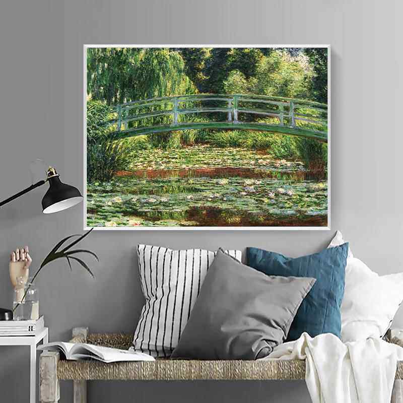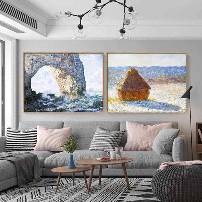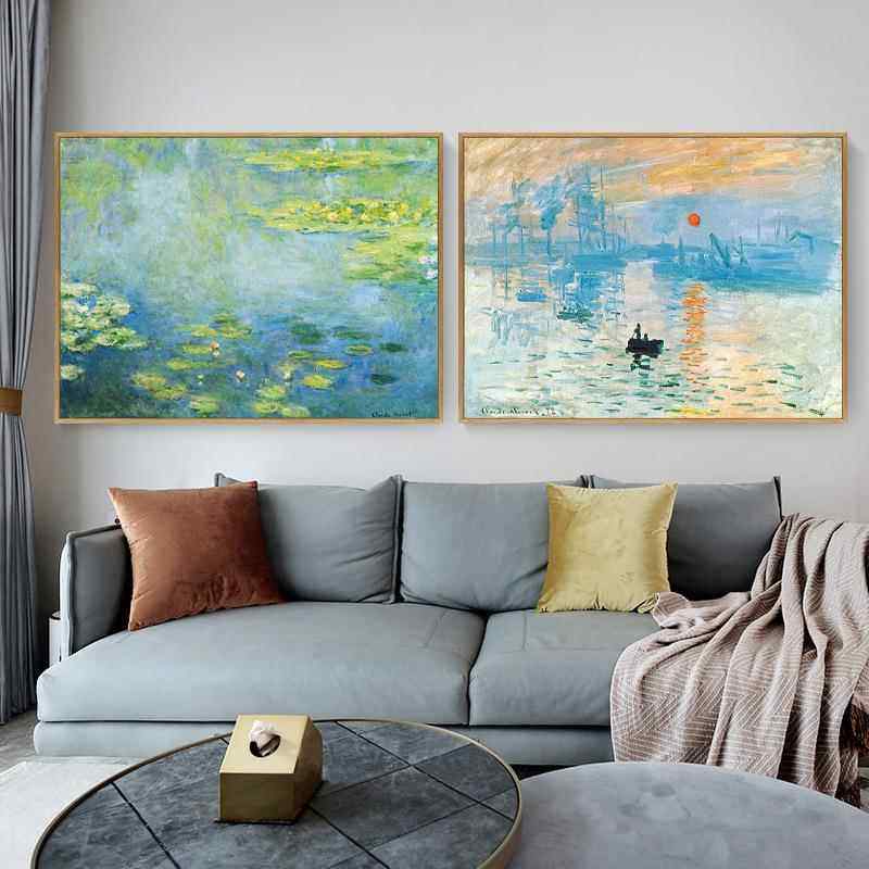 莫奈睡莲挂画世界名画客厅艺术感油画书房玄关日出印象风景装 饰画