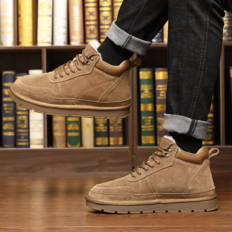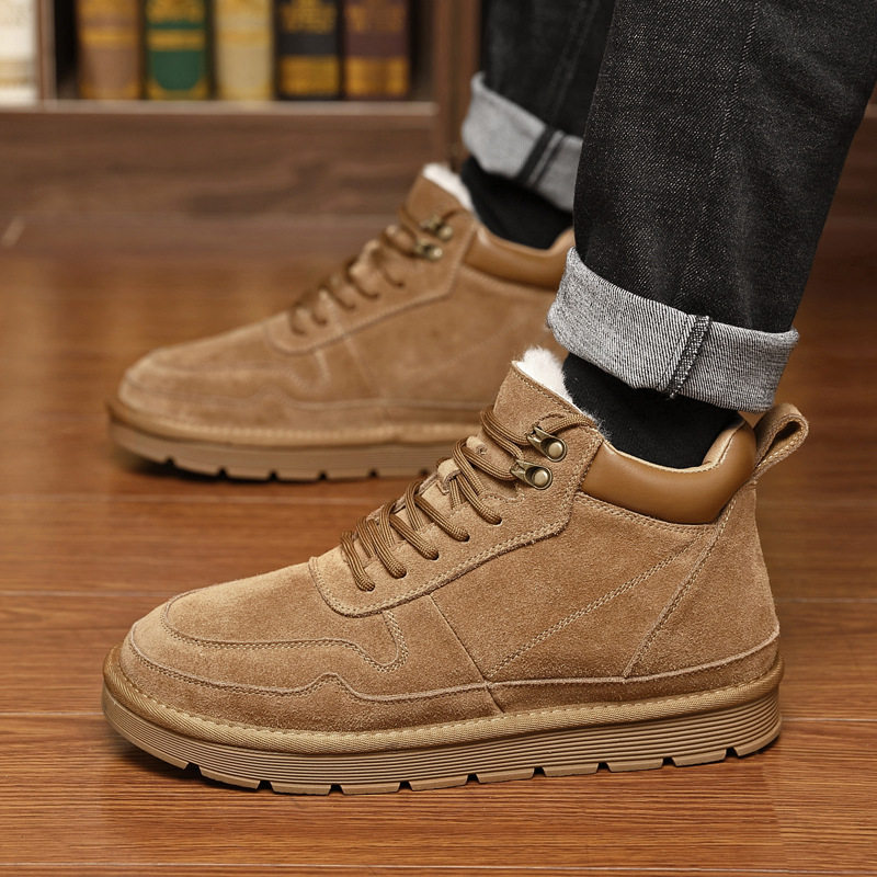 皮毛一体面包鞋 回力雪地靴男款 加绒加厚皮面保暖鞋 东北棉鞋 男 冬季