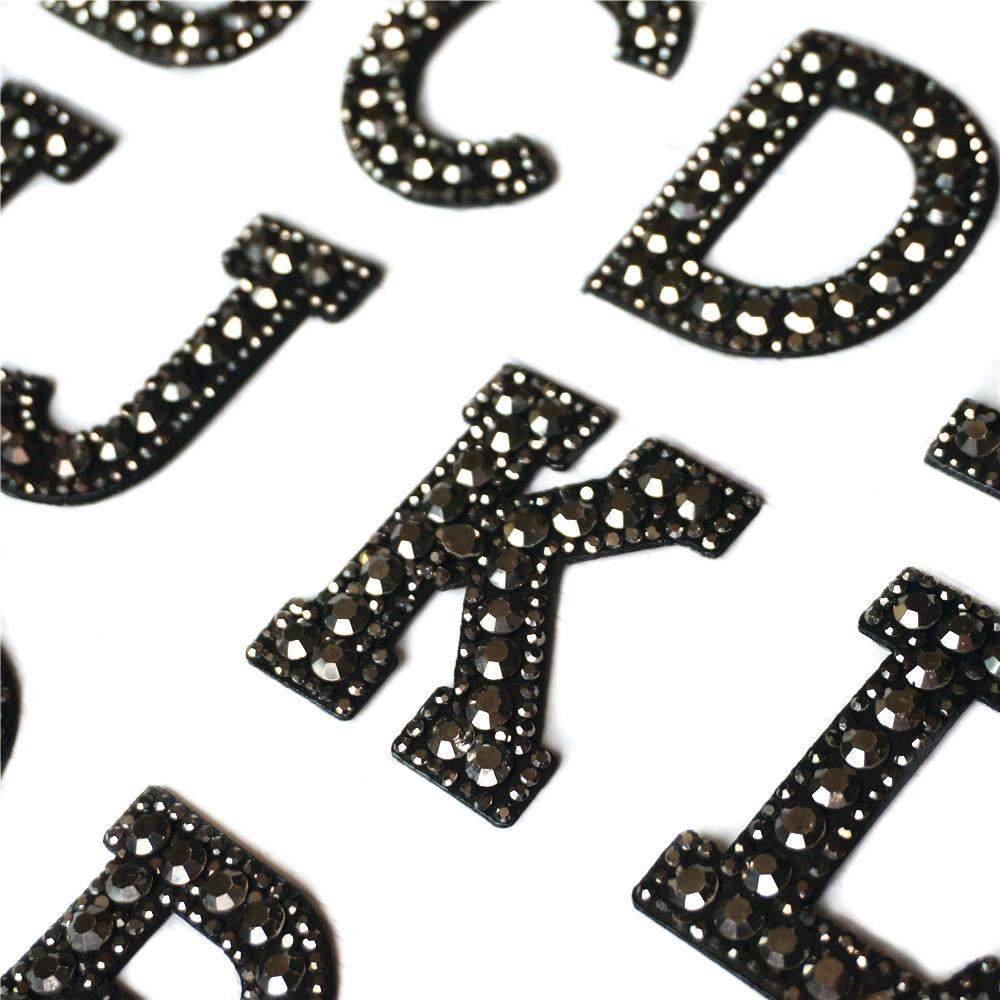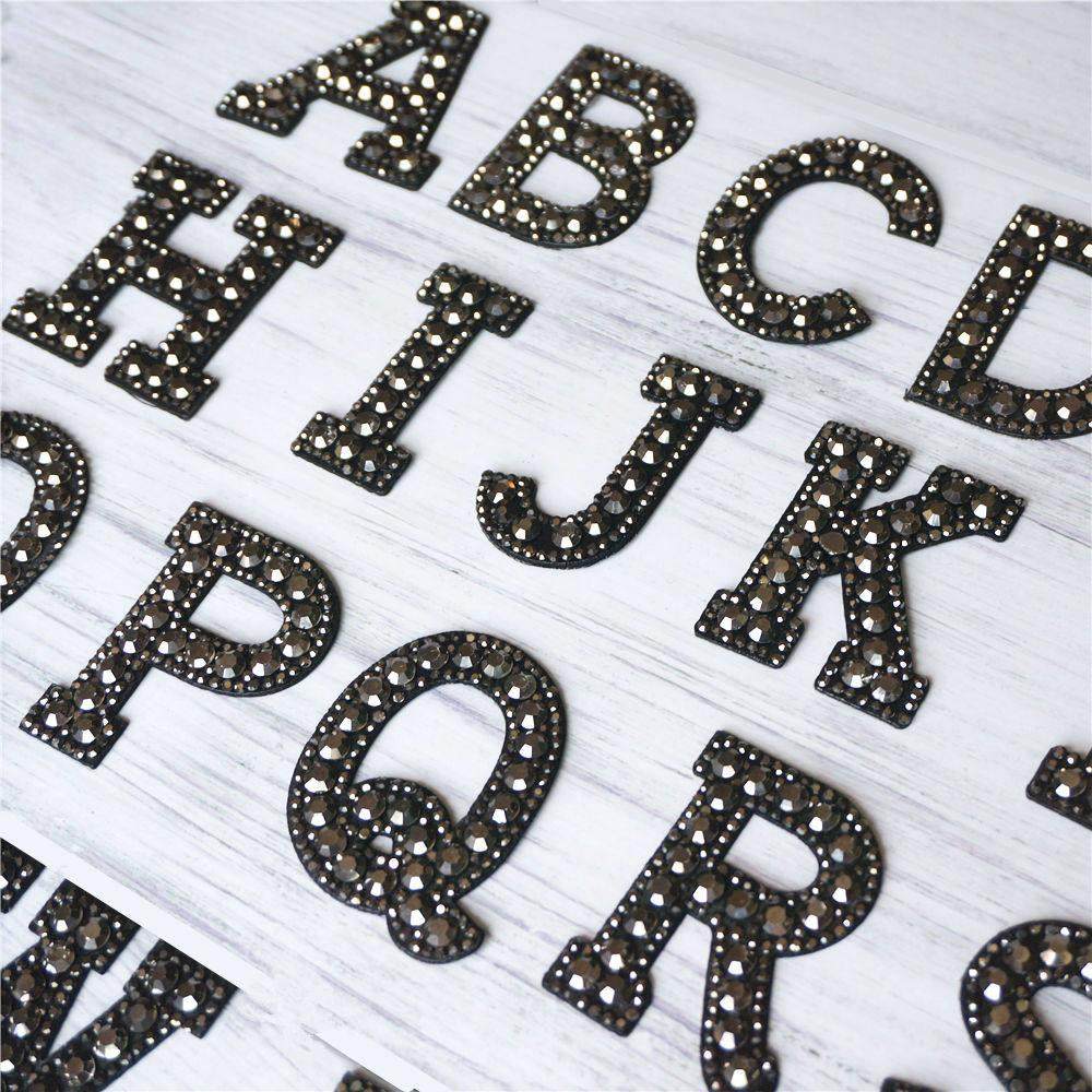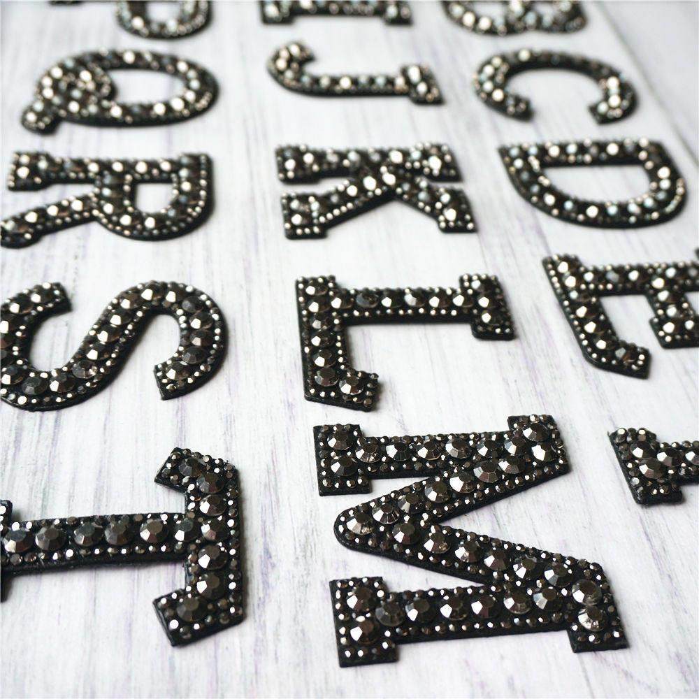Alphabet Letters Rhinestones Patche Iron Sew Black ABC
