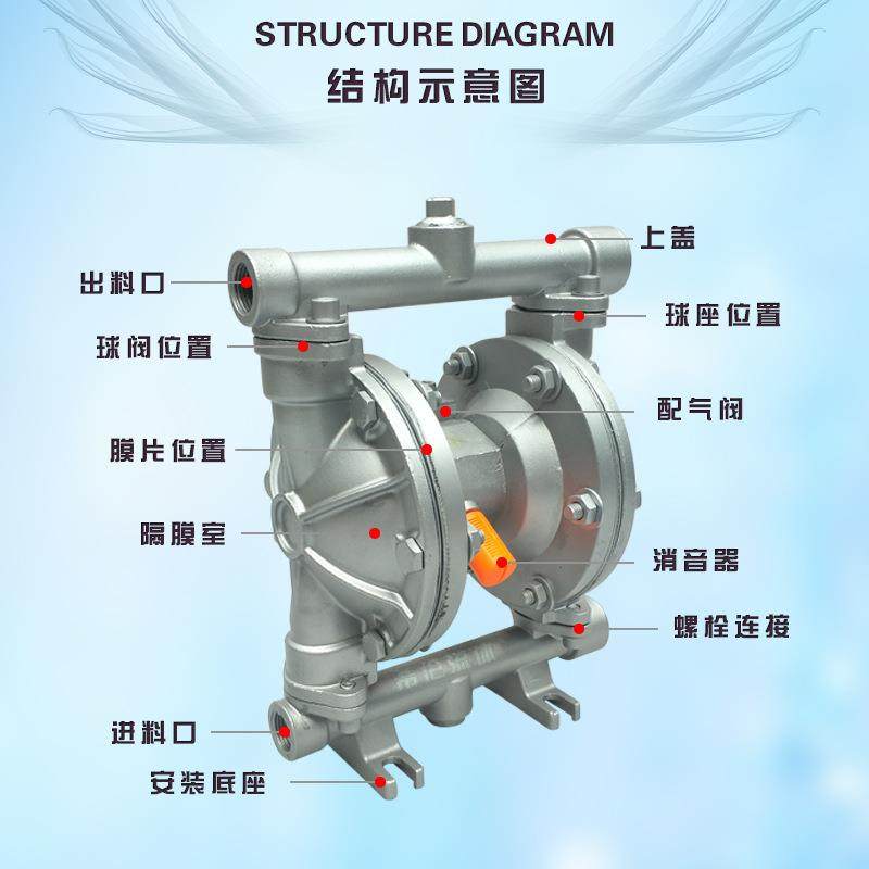 QBK 15P不锈钢双隔膜泵304不锈钢双隔膜泵希伦气动隔膜泵