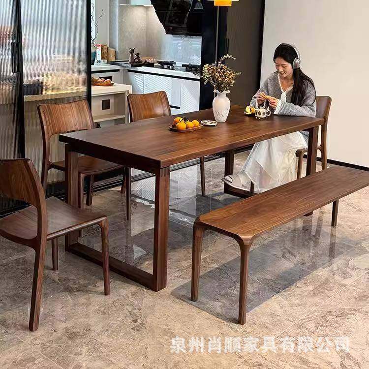 莫比恩厅全实木餐椅小户型胡桃桌木大板桌家用长方形子餐YIF桌饭