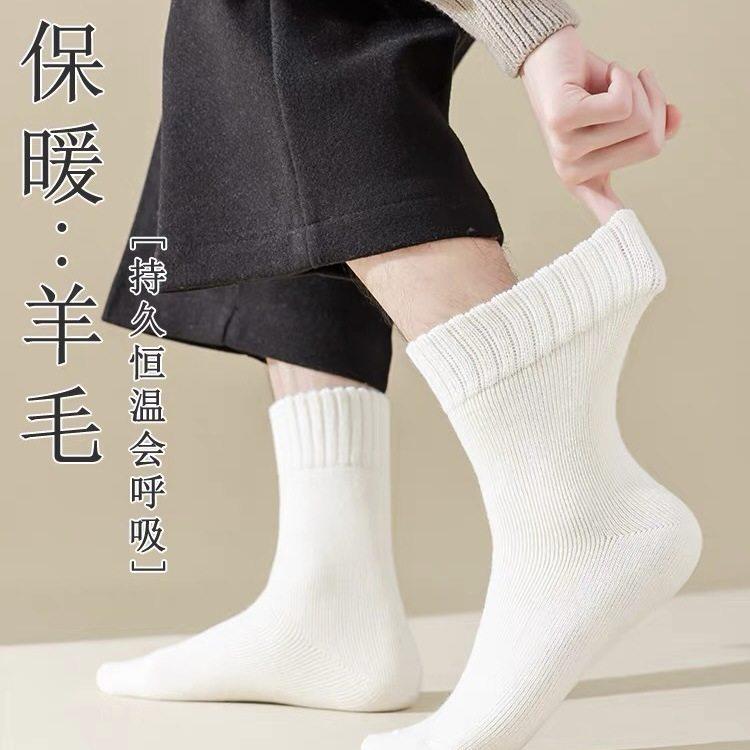 袜子男士 秋冬加绒加厚中筒袜拉毛拉绒羊绒袜保暖地板袜抗寒毛圈袜