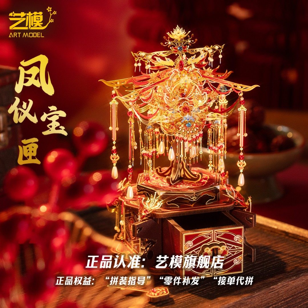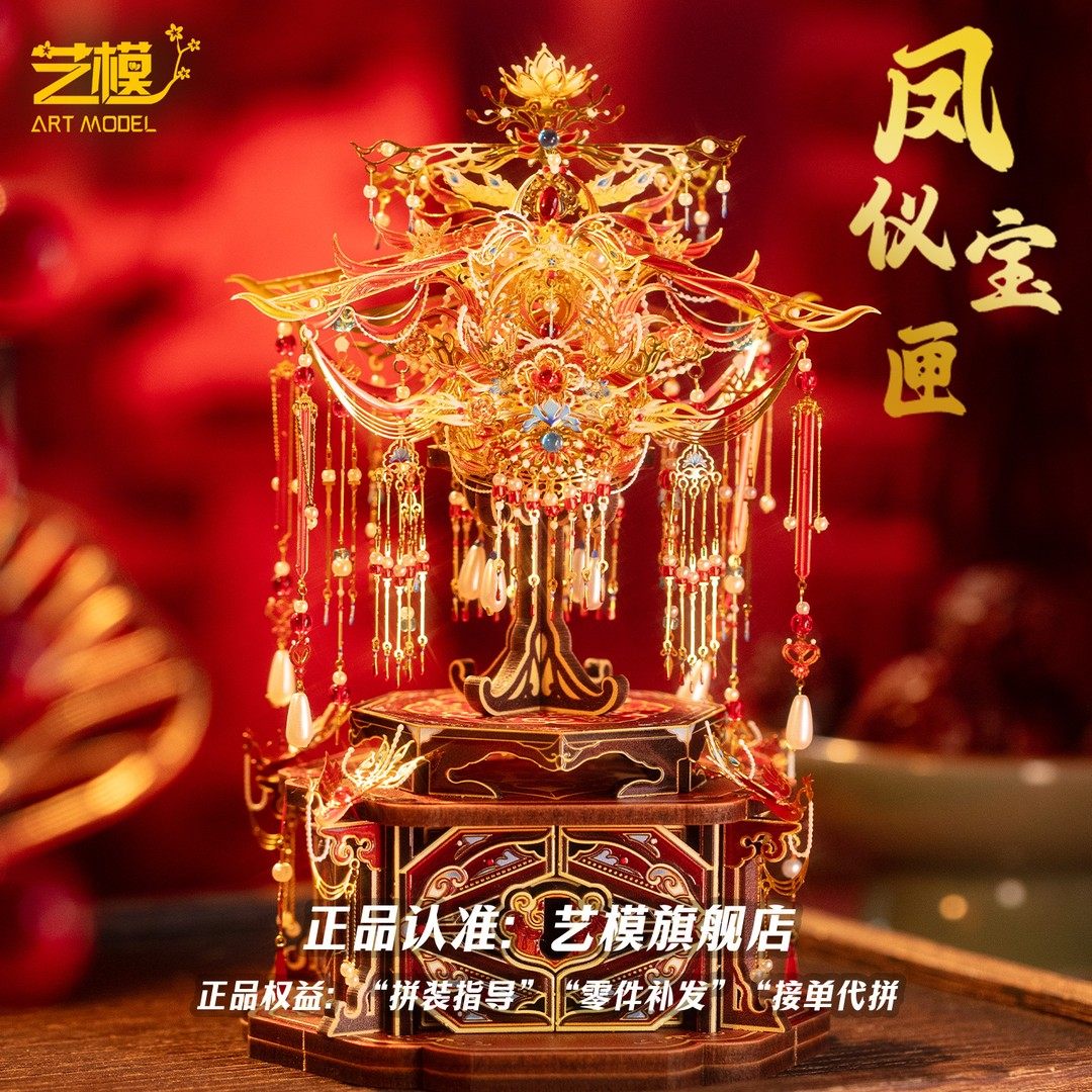 艺模十里红妆点翠如意凤冠首饰盒立体拼装 金属模型拼图结婚礼物