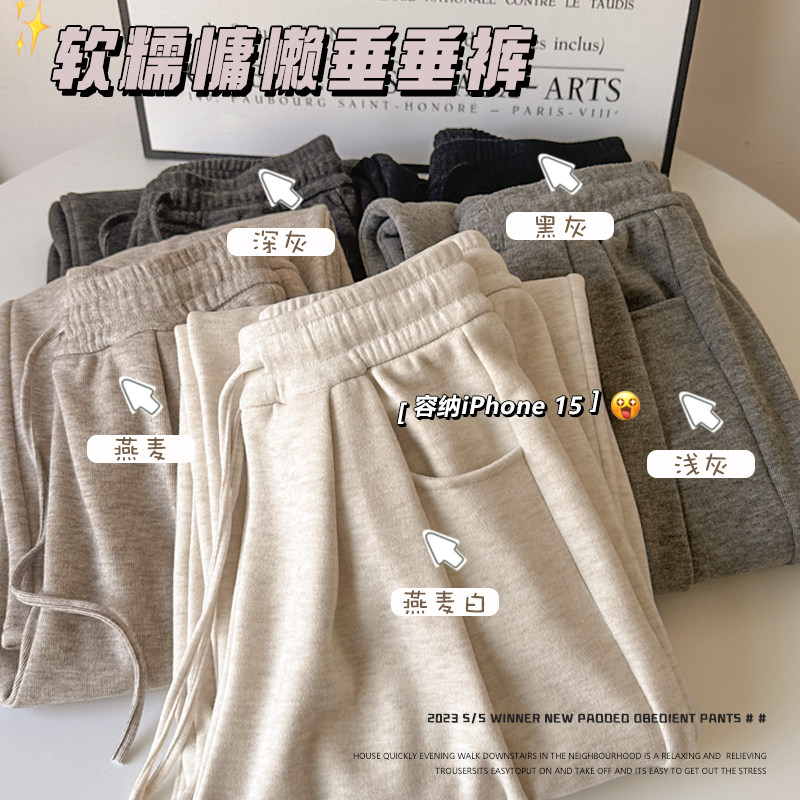 胖mm弹力梨形身材百搭遮垮阔腿裤 加绒大码 女秋季 300斤灰色糯米裤