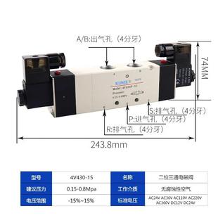 DC24V 电磁阀三位五通中封AC220V 4V430 4V430C