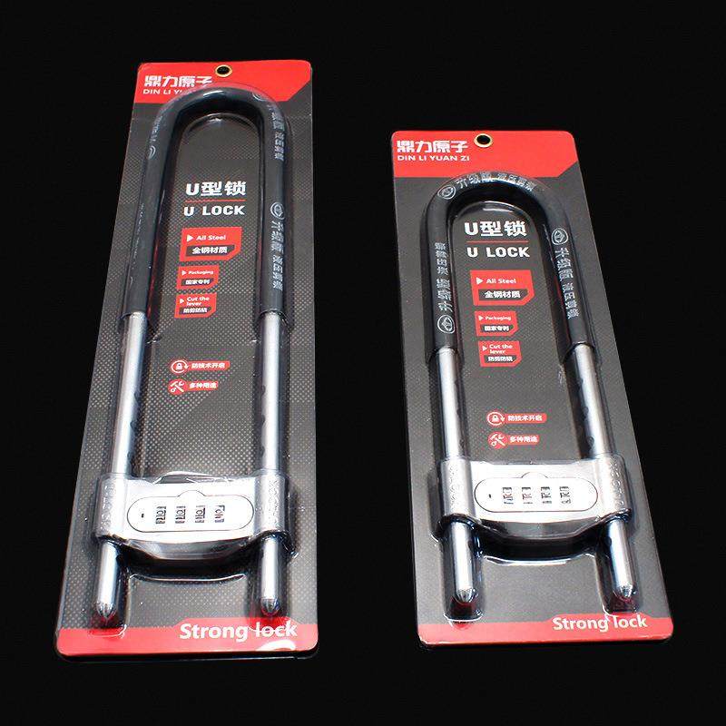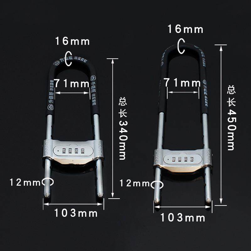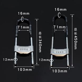玻璃门u型密码 锁商铺双开门办公机械u形锁防剪防撬加长仓库插锁