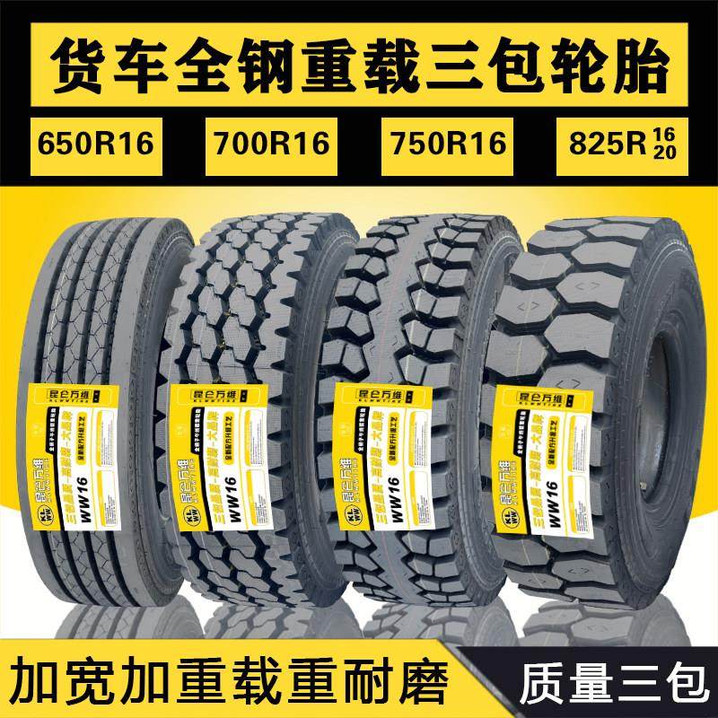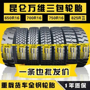 昆仑万维载重700R16 825R16轻卡825R20全钢丝货车轮胎加重 750R16