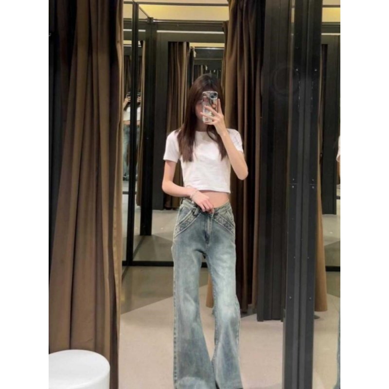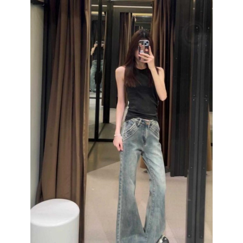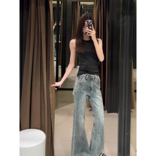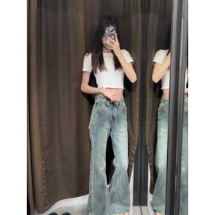 显瘦高腰微喇阔腿裤 设计感毛边水洗牛仔裤 学生百搭修身 新款 女冬季