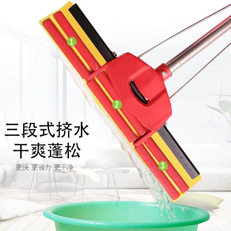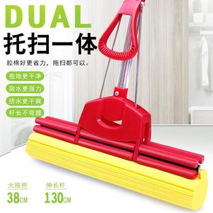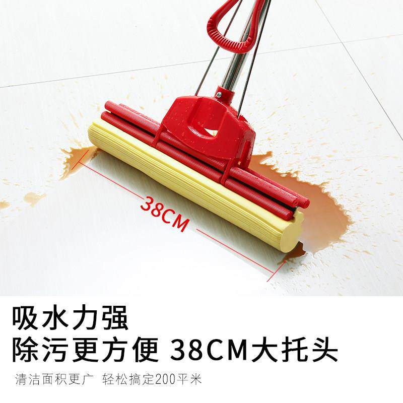 家用38cm大号免手洗不锈钢海绵吸水滚轮式 胶棉挤水拖把头懒人拖布